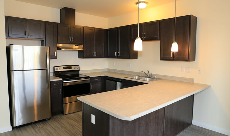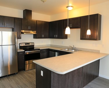 Amenities of the apartments include: full size washer and dryer in your home, dishwasher, patio/balcony, generous storage space, beautiful landscaping, and a private community courtyard with bench and BBQ stand.
